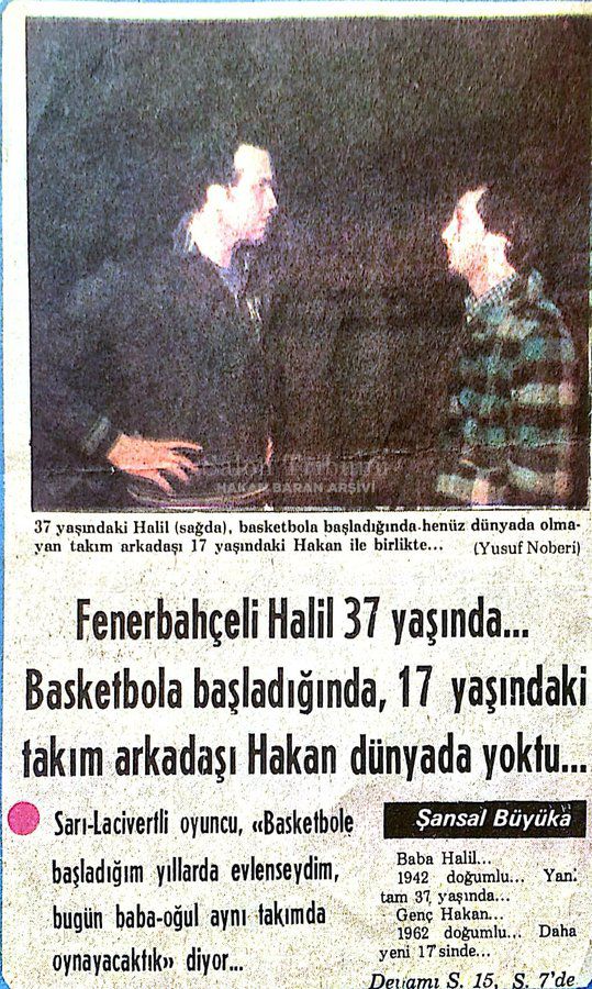Hakan Baran: (Elindeki bir gazete kupürünü göstererek) Bak şu başlığa: “Fenerbahçe Basketbol Takımı 6 hafta sonra idman yapacak bir salon bulabildi.” Bu A takımdan bahsediyor. Fenerbahçe’nin o dönemki durumunu gösteren bir manşettir bu; antrenman salonu bile bulamıyorduk.